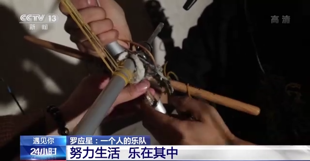 罗应星研制这套乐器组合,费了不少心思,一点点的调试,才能让这些物件儿按照他的想法运转。而更难的,则是协调自己身体的各个部位,按照乐曲的编排进行演奏,罗应星经过了大量的练习,才能熟练完成一个人的乐队表演。热爱音乐的罗应星用音乐治愈伤痛,也凭着自己的努力支撑起了一家人的生活。美妙的音乐需要苦练才能奏出,幸福的生活也需磨炼才能获得,这也是过去十几年间,罗应星秉持的人生态度。