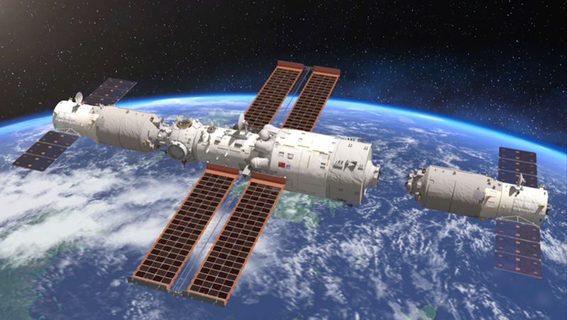 天舟四号与空间站组合体交会对接演示图。中国航天科技集团五院供图