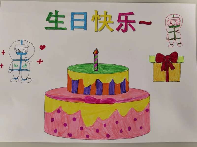 就在医护人员收到这封感谢信的不久后,同病区的患者杨女士(化名)也收到了一张卡片——涂鸦生日贺卡。这次的“发件人”是应急三区的护士们。