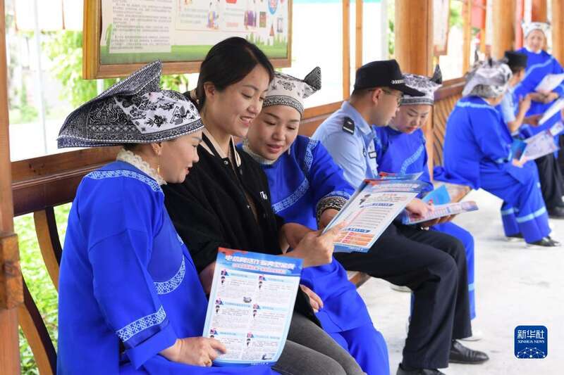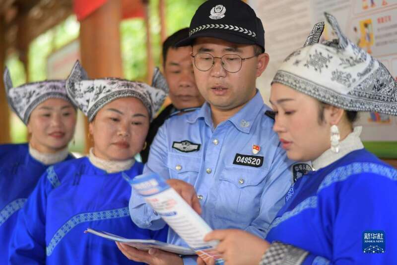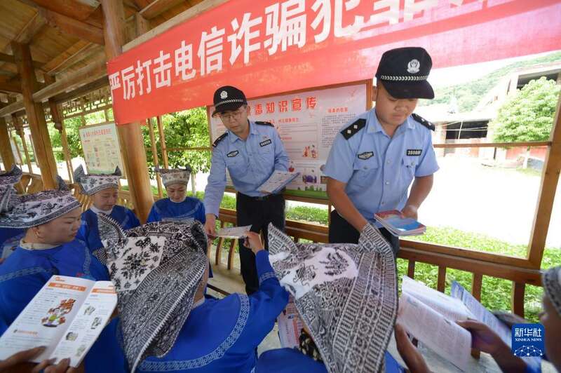 当日是“世界电信日”,贵州省黔东南苗族侗族自治州三穗县政法、公安等部门组织干警和乡村干部进村入户,向群众讲解防范电信网络诈骗知识,提高群众的防范意识。