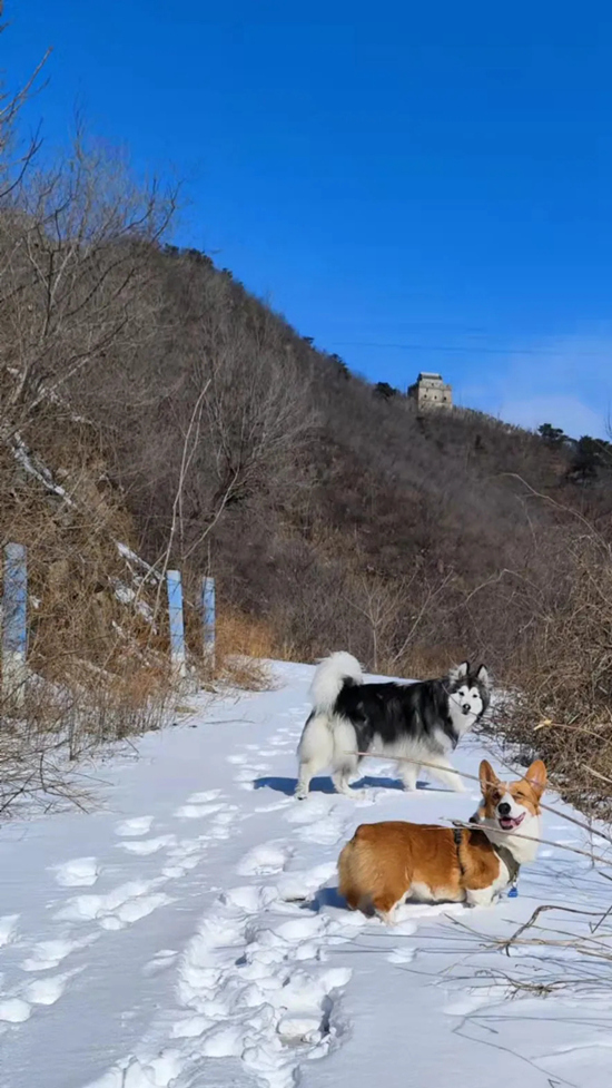 他们会选择没有断崖、爬升高度较小的路线,但仍有一些腿短的小型犬没走两步就在原地打转,要靠主人抱着、背着走完全程。狗的社交带动人的社交,当两只狗玩在一起,主人们也会交流育狗心得、分享北京有哪些可以带狗进入的餐厅。也有“狗奴”想来撸狗,不好意思地询问,“我没有狗,但我可以遛狗、哄狗开心、夸狗,能不能也让我参加?”