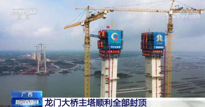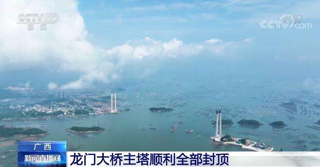 央视网消息:昨天(5月20日),广西跨海大桥龙门大桥东主塔顺利封顶,至此,龙门大桥东、西两岸主塔全部实现封顶,下一步将进入缆索系统施工阶段。