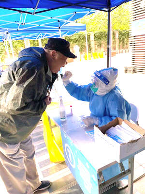 于夏岚为父母做核酸。受访者供图
