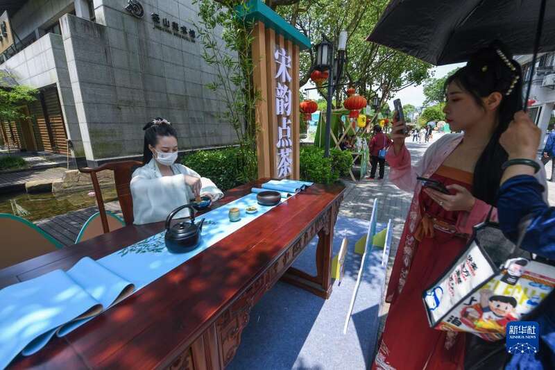5月21日,浙江省杭州市余杭区在径山镇开启了非遗保护月暨宋韵文化系列展示活动。众多特色民俗活动,让游客领略宋韵文化气息。
