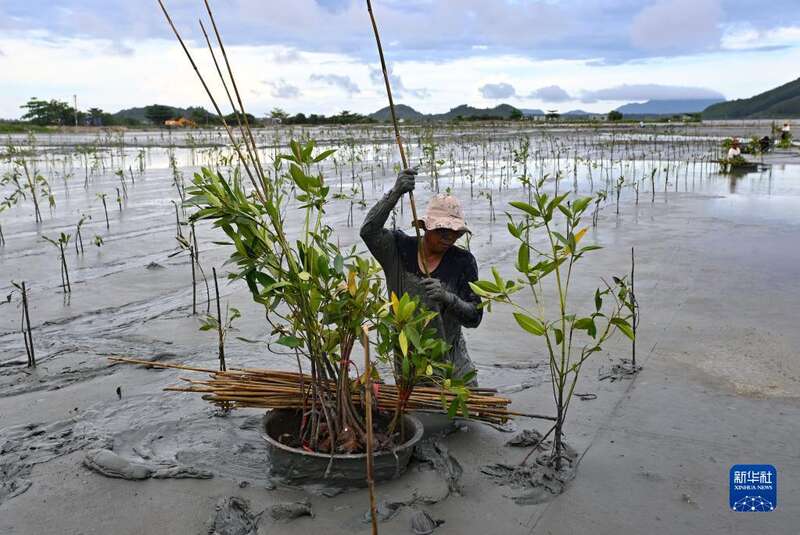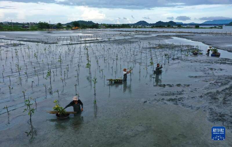 近年来,为了修复滨海生态环境,海南万宁市开展红树林生态修复工程,目前已种植红树林2480亩。