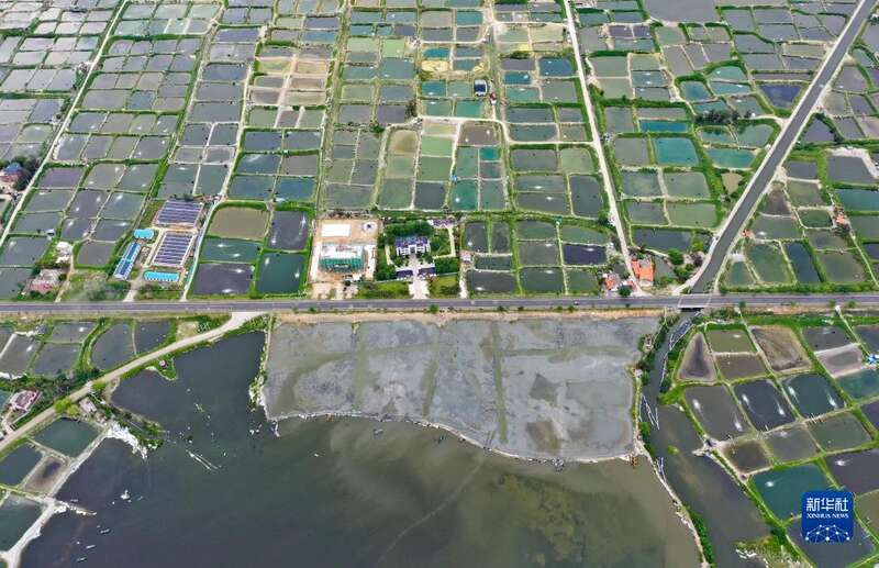 这是万宁市老爷海海域正在进行的退塘还湿项目(5月22日摄,无人机照片)。
