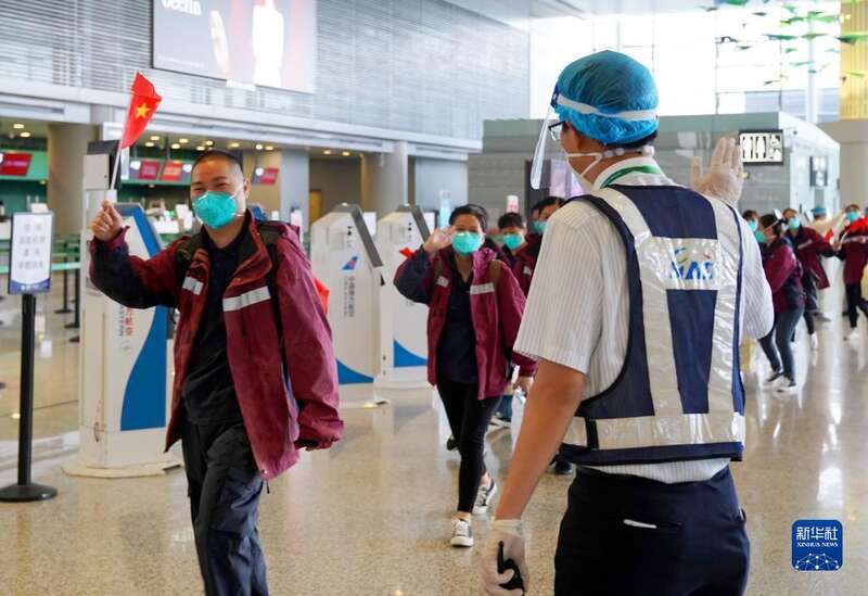 5月23日,海南援沪医疗队抵达上海虹桥国际机场准备返回海南。