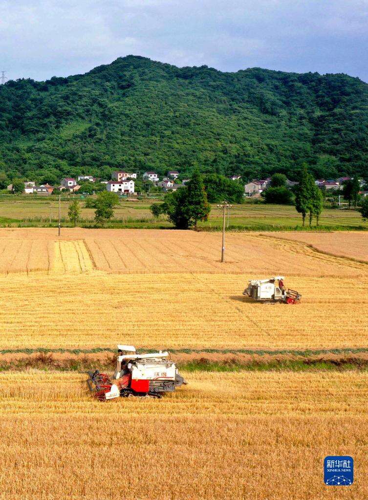 5月23日,在安徽省铜陵市铜官区西湖镇柴塘村,农户在抢收小麦。
