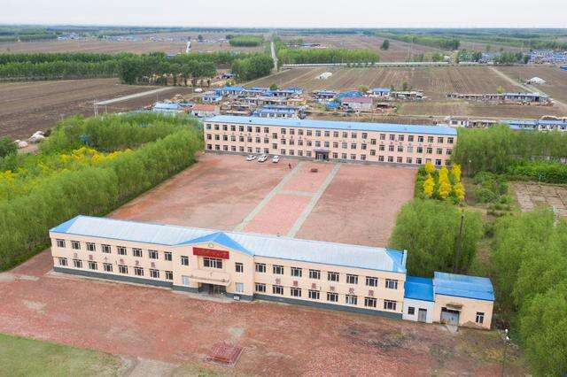↑5月24日拍摄的黑龙江省安达市任民镇中心小学校园(无人机照片)。
