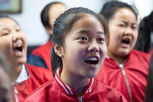↑“村里的孩儿”音乐班的孩子在练习合唱。