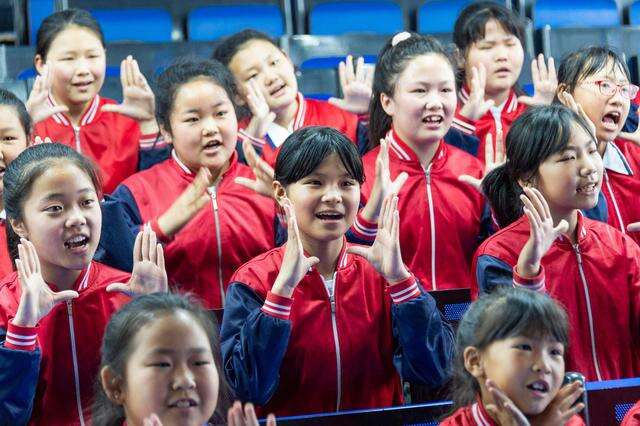 ↑5月24日,在黑龙江省安达市任民镇中心小学,张雨给“村里的孩儿”音乐班的孩子讲表演技巧。