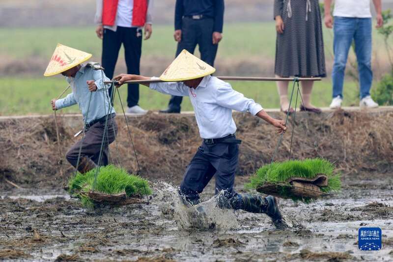 当日,江苏省淮安市洪泽区举行第七届禾采插秧文化节。村民和游客在稻田里比赛插秧、摸鱼、捉鸭,乐享周末时光。插秧文化节已成为当地乡村振兴的特色旅游品牌。