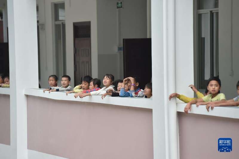 2016年10月10日,渔洞小学的孩子们在新教学楼里。