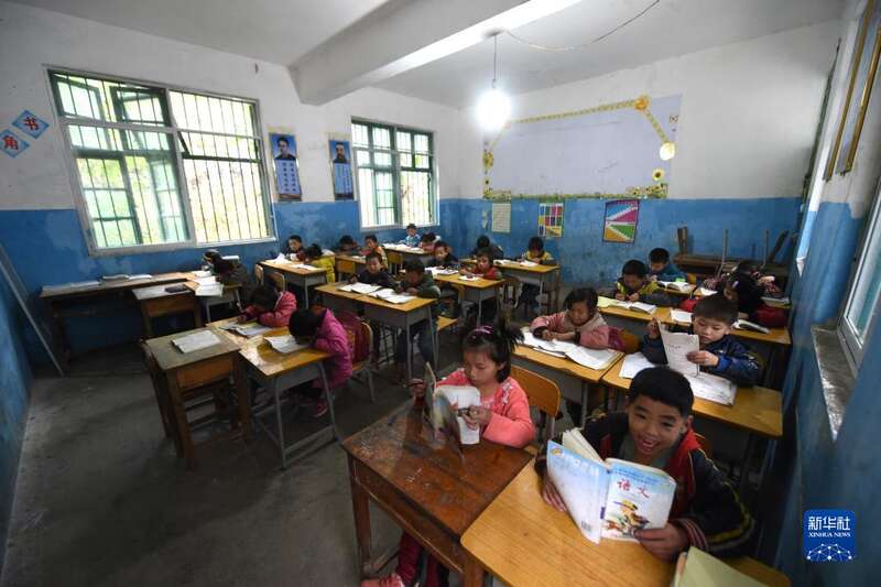 2014年11月19日,渔洞小学的孩子们在教室里上课。