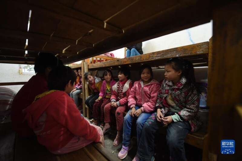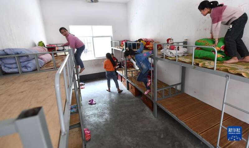 2021年3月18日,渔洞小学的孩子们在新宿舍里准备午休。