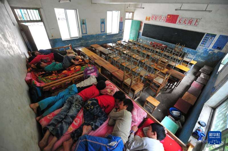 2012年5月30日,渔洞小学的孩子们在教室里午休。