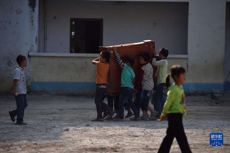 2016年9月20日,渔洞小学的孩子们将讲台搬进新教学楼。