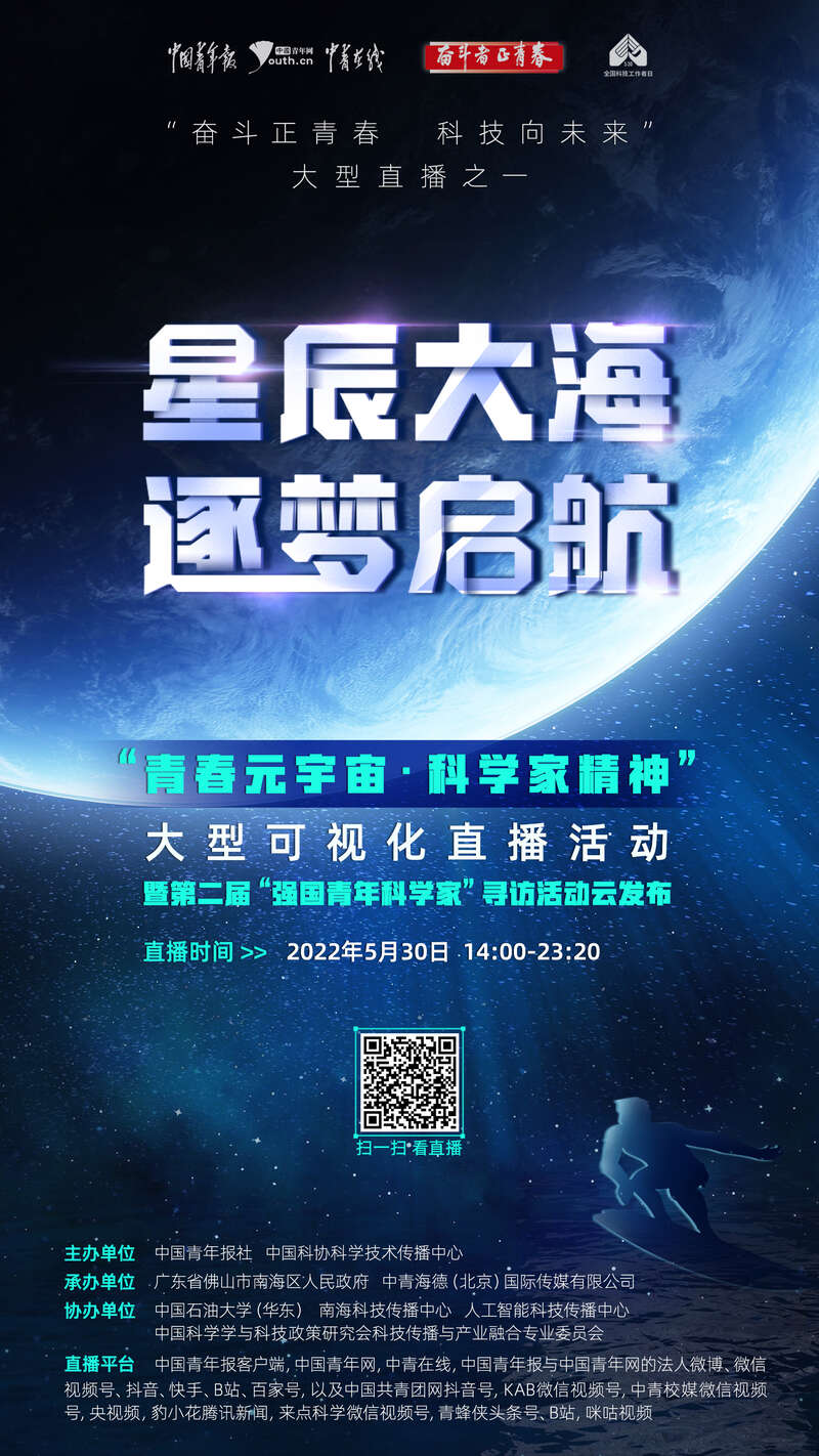 在第六个全国科技工作者日到来之际,中国青年报社举办“青春元宇宙·科学家精神”大型直播活动暨第二季“强国青年科学家”寻访活动。5月30日14:00-23:20,记得锁定中国青年报全媒体平台,我们不见不散!还有丰富的奖品等你!