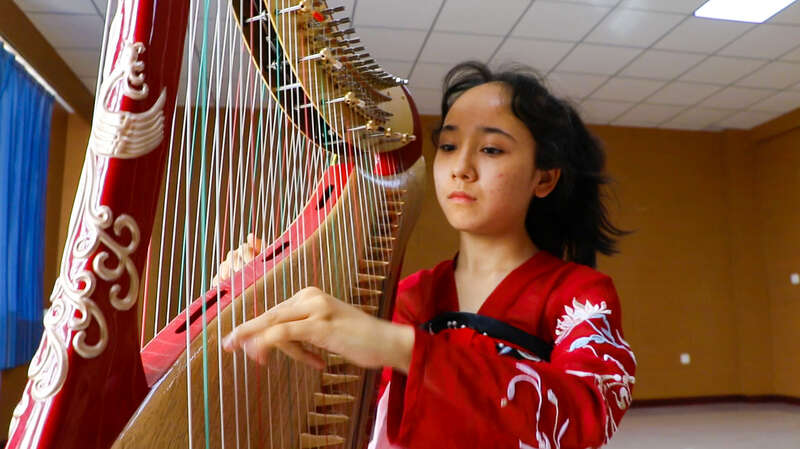 为了学习箜篌,维吾尔族女孩古丽再排尔·穆合塔尔与父母签订“合同”,约定“假如学业有半点退步,就不学了”;在汉族女孩袁希的记忆中,多少次妈妈骑着电动车穿梭在沙尘暴中带她去青少年活动中心练习,手指常磨出血泡。