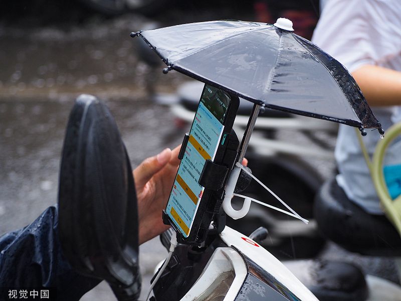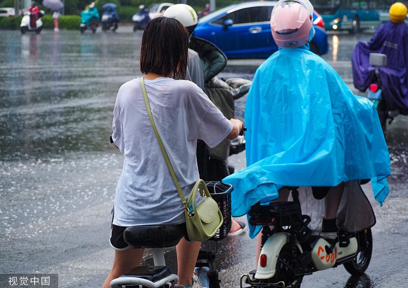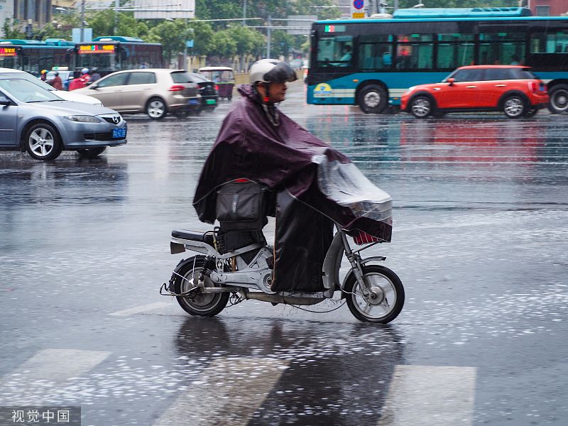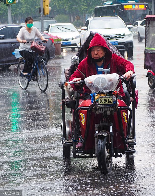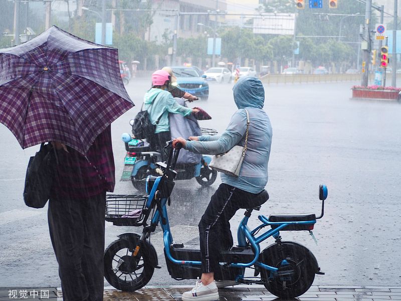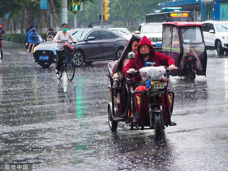济南突降急雨 街头行人冒雨出行