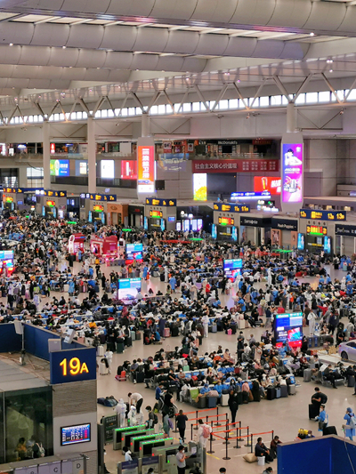 上海虹桥火车站为此专门开通了“离沪学生专用通道”,来自各个高校的大巴车可以在此停靠,学生从专用入口检票进站。张允妍和易嘉都觉得,排队进站的时间要比自己想象中快很多。