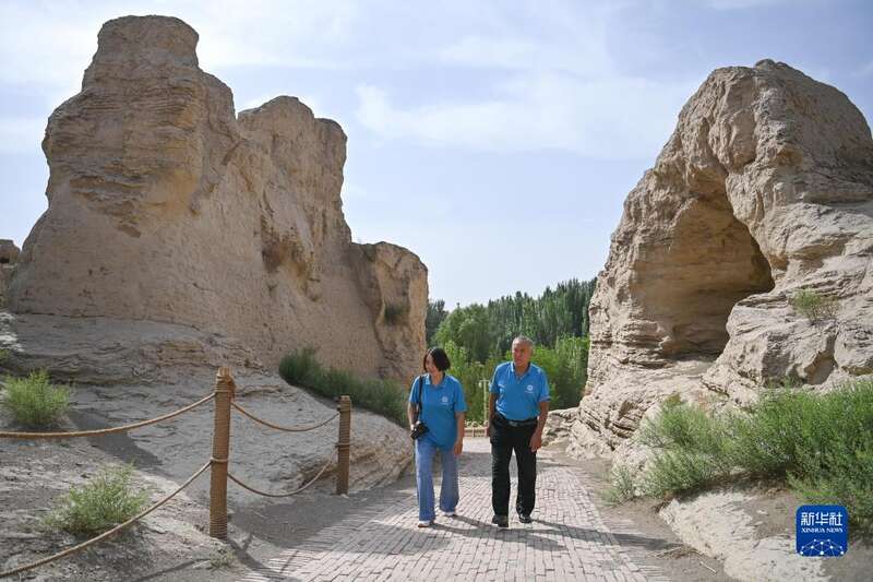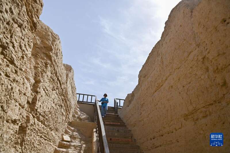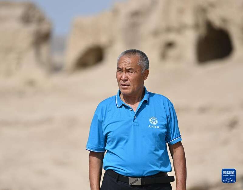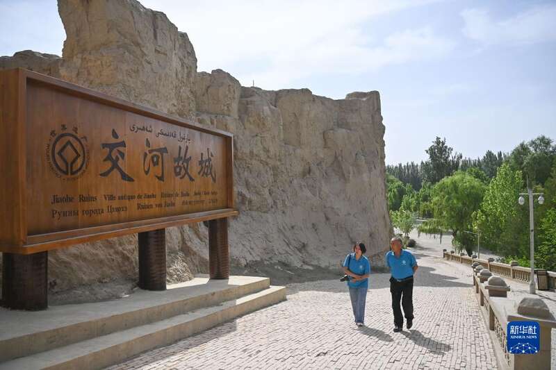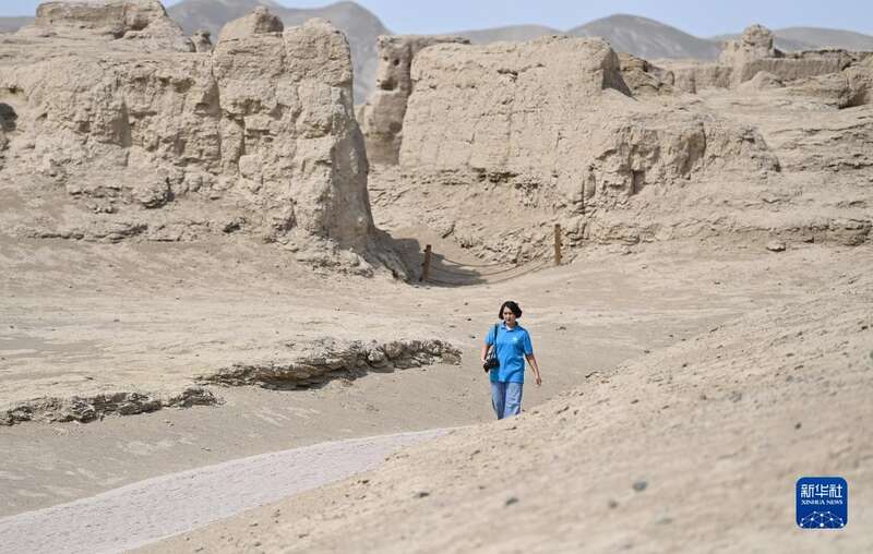 正值仲夏,交河故城宛如一艘古老的大船,静静停泊在新疆吐鲁番的烈日下。39岁的交河故城文物保护员古丽拜克热·买明像往常一样,对故城进行巡查、维护,保障游客安全参观,并用相机拍摄记录故城的点滴变化。从1972年起,古丽拜克热的爷爷、父亲、再到她自己,三代人陆续成为交河故城的文保员,接力守护交河故城已有半个世纪。
