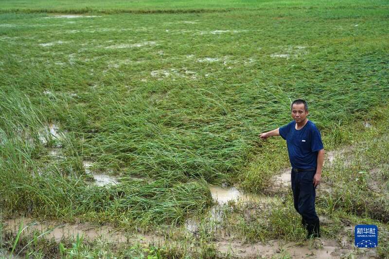 6月17日,在江西省龙南市桃江乡洒口村,村民介绍水稻的受灾情况。