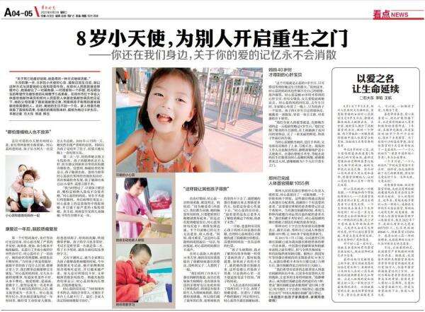 8月的第一天,8岁的小天使时心蕊,提前过完生日后,就以这种方式与深爱她的父母和哥哥作别。在郑州人民医院器官移植中心,她捐献出了一对眼角膜、一对肾脏和一个肝脏,把光明与生的希望作为最珍贵的礼物赠予5名患者。
