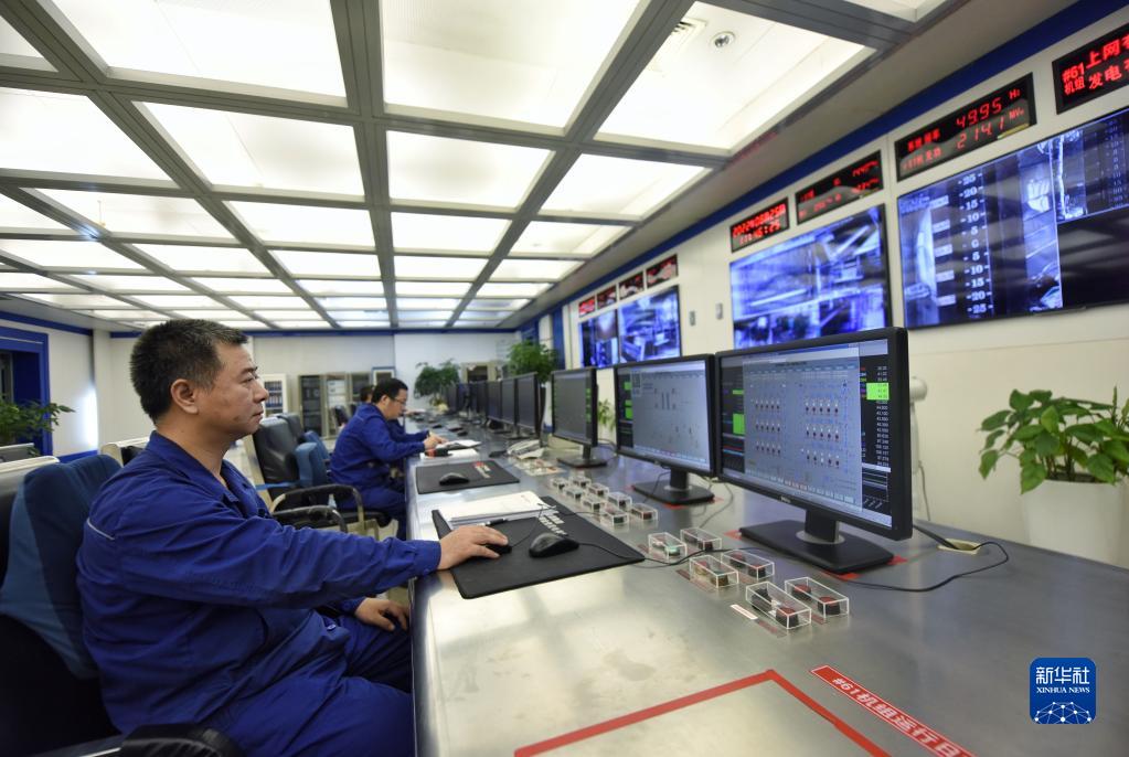 8月25日,国能成都金堂发电有限公司职工在集中控制室关注机组运行状态。