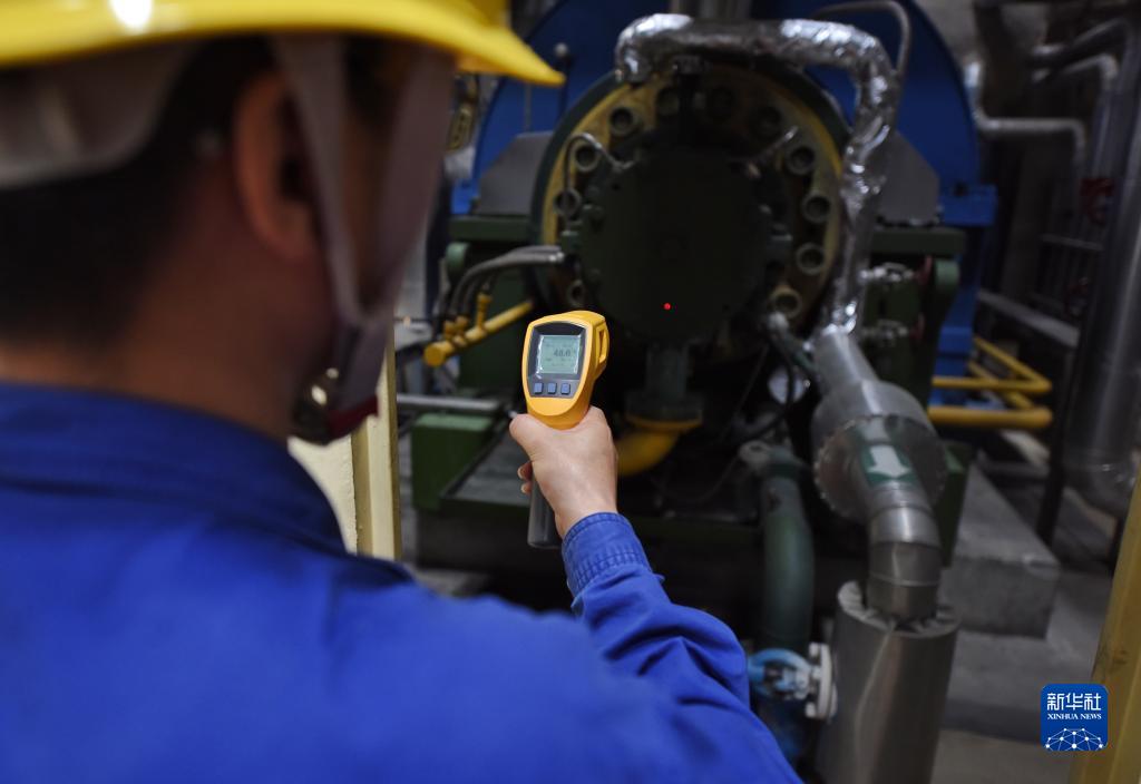 8月25日,国能成都金堂发电有限公司职工在生产厂区检测设备运转温度。