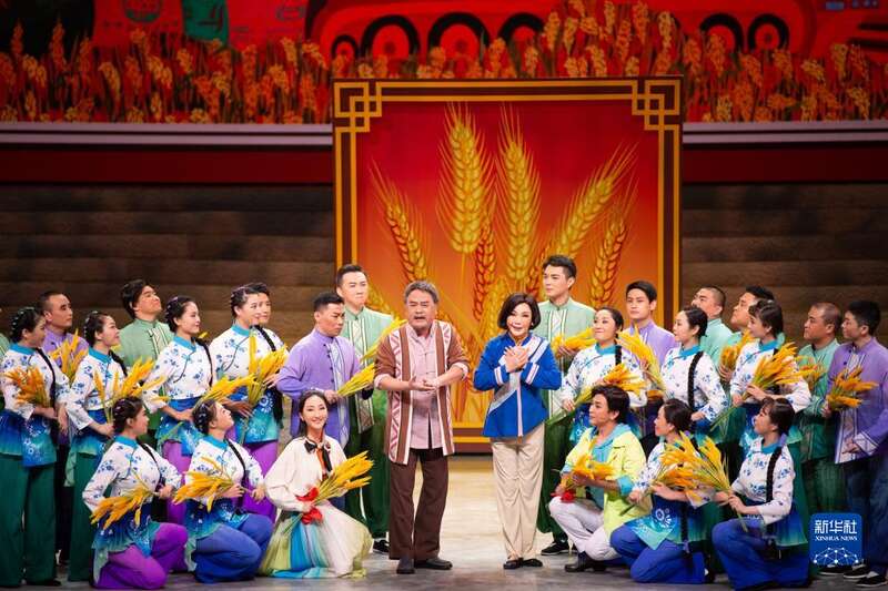 9月1日,演员在开幕式文艺演出中表演根据《土地长歌》剧本选段创作的评剧《手中饭碗端得稳》。