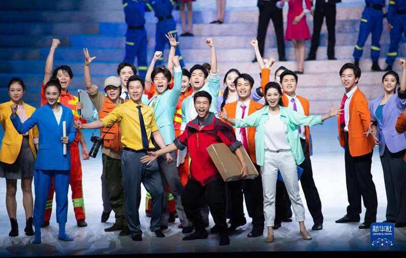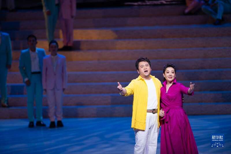 9月1日,演员在开幕式文艺演出中表演音乐剧《在远方》选段。