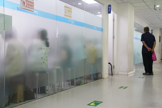 2019年7月18日,在北京海淀黄庄的拔高型补习班上,许多家长在教室里旁听,有的家长在门口等候。由于课程难度大,家长需要与孩子一同上课学习,才有能力在课后辅导孩子。