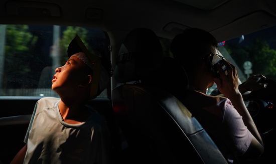 8月19日,北京,高飞与刚上完钢琴课的儿子马克在回家途中。高飞在一家外企上班,平日工作繁忙,但他依然会平衡好时间,按时接送马克上课外班,还会全程旁听。“双减”一年后,曾寄希望用补习班提高孩子成绩的家长,开始投入更多精力陪伴孩子。他们慢下脚步,反思自己的教育方式和与孩子的相处方式。