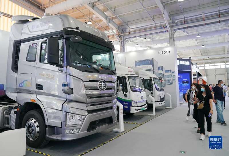 这是9月2日在供应链及商务服务专题展区拍摄的一款应用于干线物流领域的自动驾驶卡车系统。