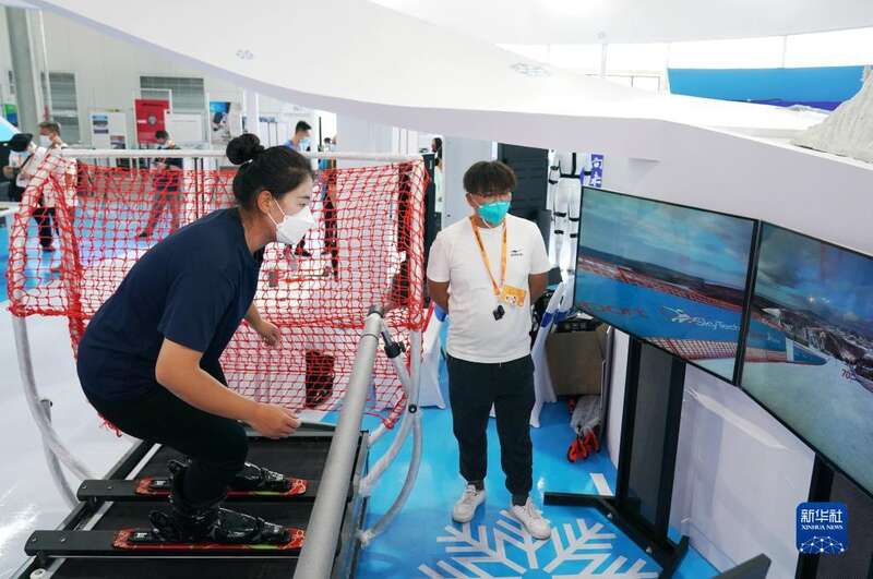这是9月2日在体育服务专题展区内拍摄的一款模拟滑雪设备。