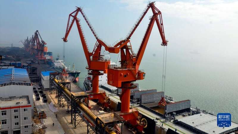 中粮油脂钦州项目5万吨级专用码头全面建成,自动化装卸设备投入使用(2012年7月9日摄)。