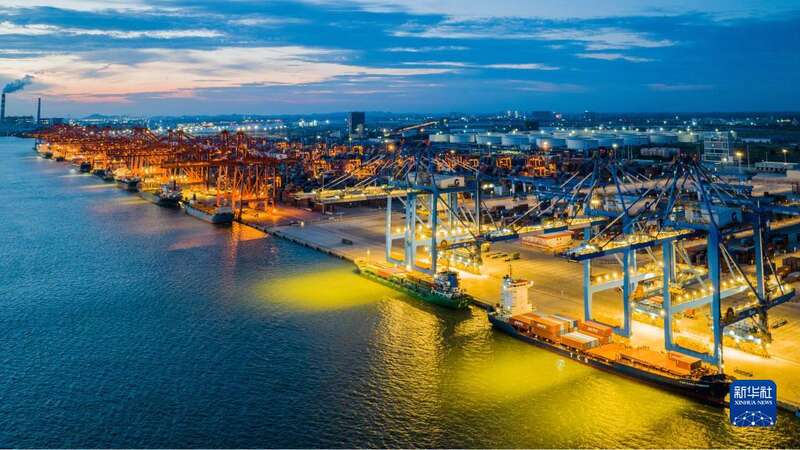 华灯初上的钦州港(2022年9月13日摄,无人机照片)。