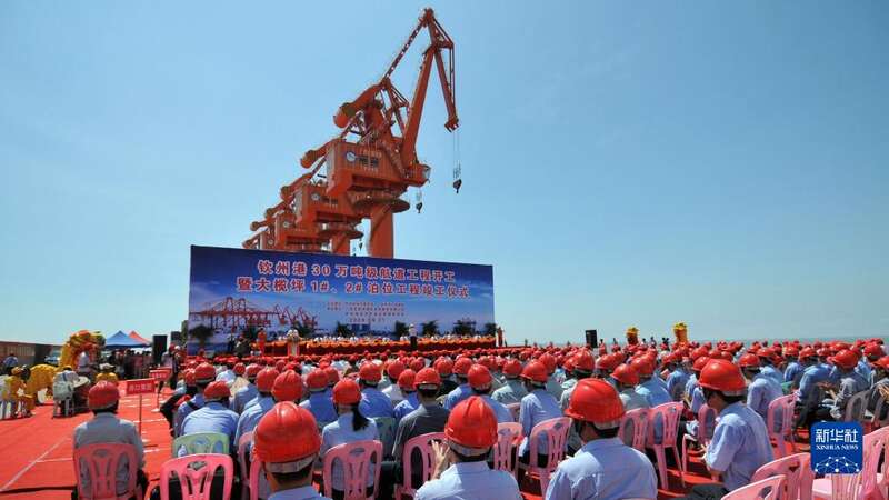 钦州港天盛10万吨级码头建成,并于次年9月正式投产(2010年9月20日摄)。