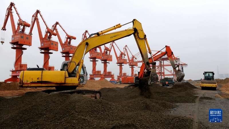 建设中的钦州港码头(2009年8月8日摄)。