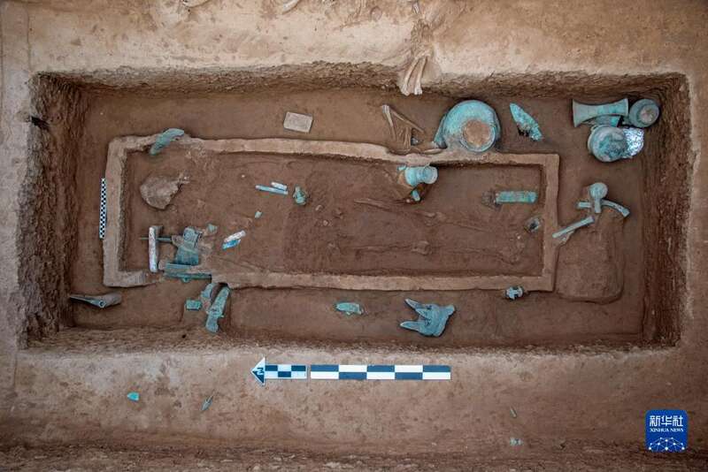 陶家营遗址M12墓葬发掘出土情况(资料照片)。