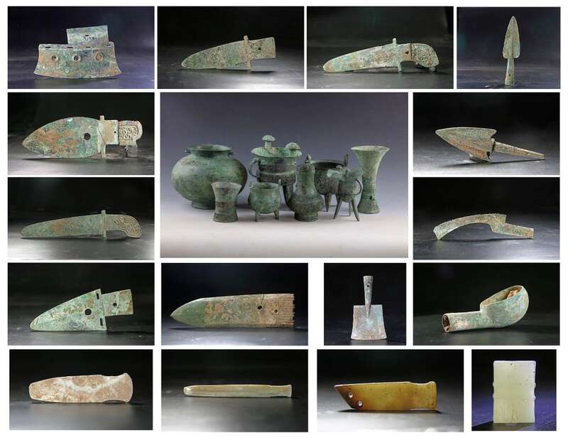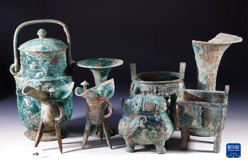 邵家棚遗址墓葬出土的铜礼器组合(资料照片)。