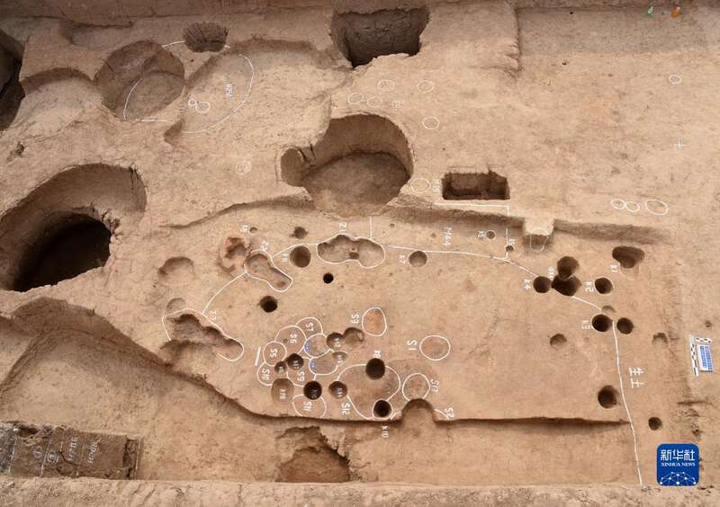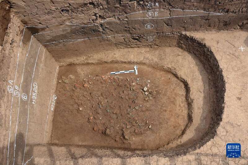 辛店遗址陶范废弃堆积坑H352出土情况(资料照片)。