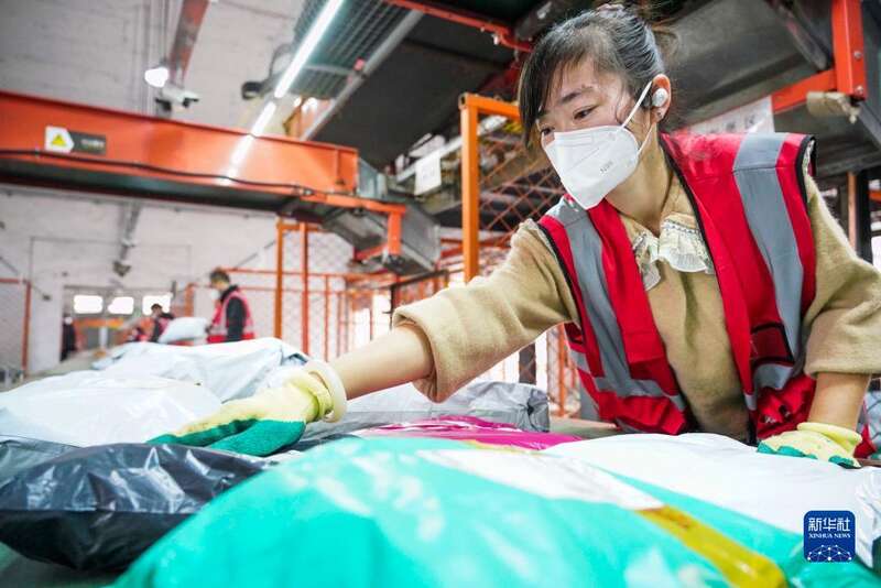 11月10日,工作人员在位于贵州省龙里县的贵州快递物流园一家快递分拨中心分拣快递。