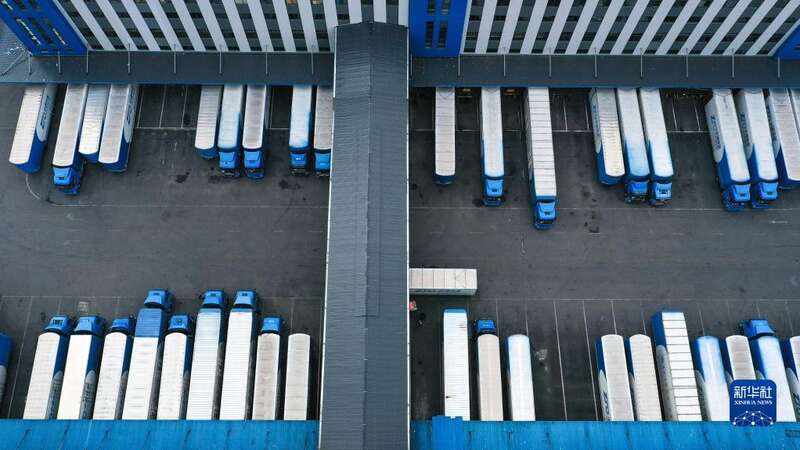 这是11月10日在位于贵州省龙里县的贵州快递物流园拍摄的快递车辆(无人机照片)。
