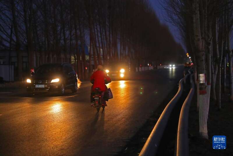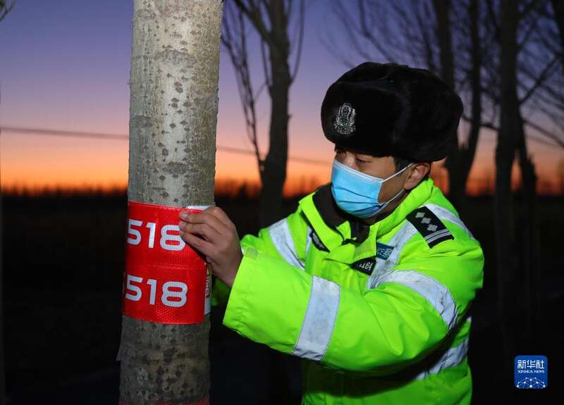 12月1日,沈阳市苏家屯区一道路两侧树上已经粘贴了反光条。