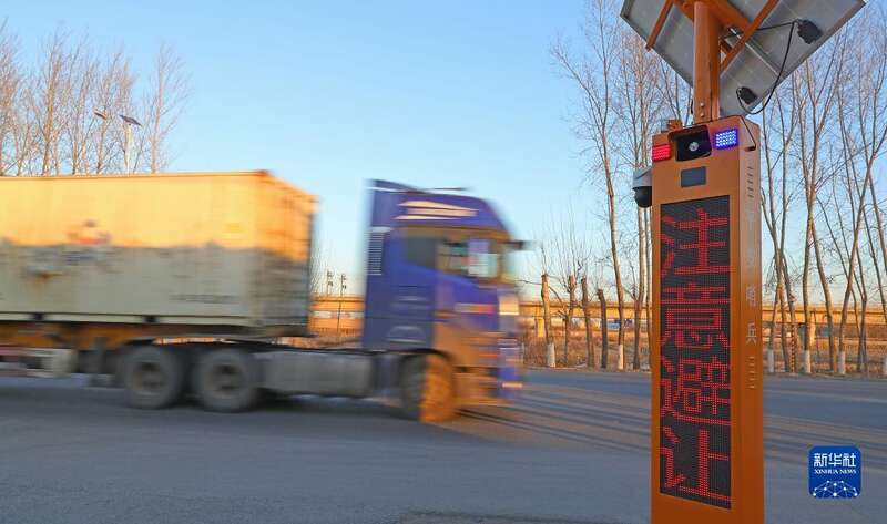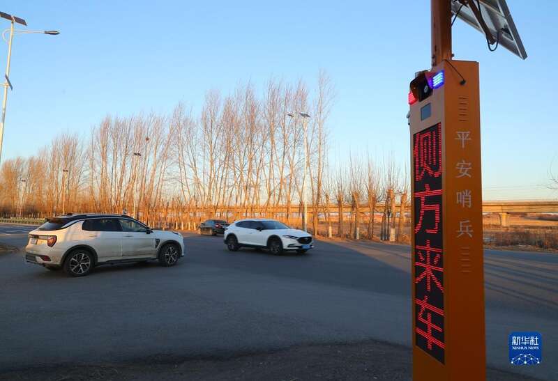 12月1日,在沈阳市沈营线苏家屯段一交叉口,沈阳市公安局交通警察局苏家屯大队设立的“平安哨兵”(无人电子提醒喇叭)提醒过往车辆减速慢行。