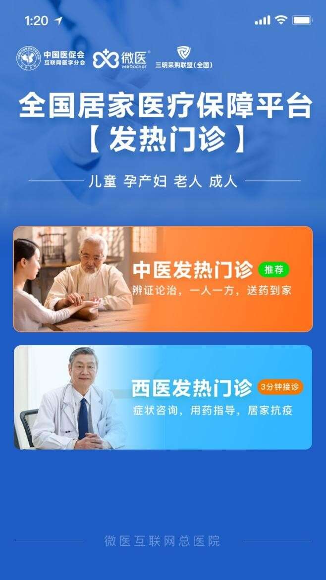 面对各地出现的新冠病毒扩散趋势和群众发热门诊就医需求激增,根据国务院联防联控机制医疗救治组《通知》,“全国居家医疗保障平台”积极行动,率先进行平台服务升级,微医互联网总医院火速在平台上线“发热门诊”,包括“中医发热门诊”和“西医发热门诊”。