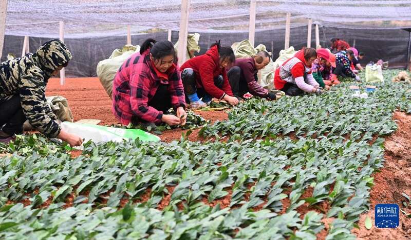 冬日,在贵州省黔东南苗族侗族自治州丹寨县兴仁镇茶叶育苗基地,村民抢抓农时,扦插从浙江省安吉县运抵的茶苗,为今冬明春移栽提供充足保障。据悉,丹寨县已建茶园12.19万亩,茶产业已成为当地助力乡村振兴的重要产业。新华社记者 杨楹 摄