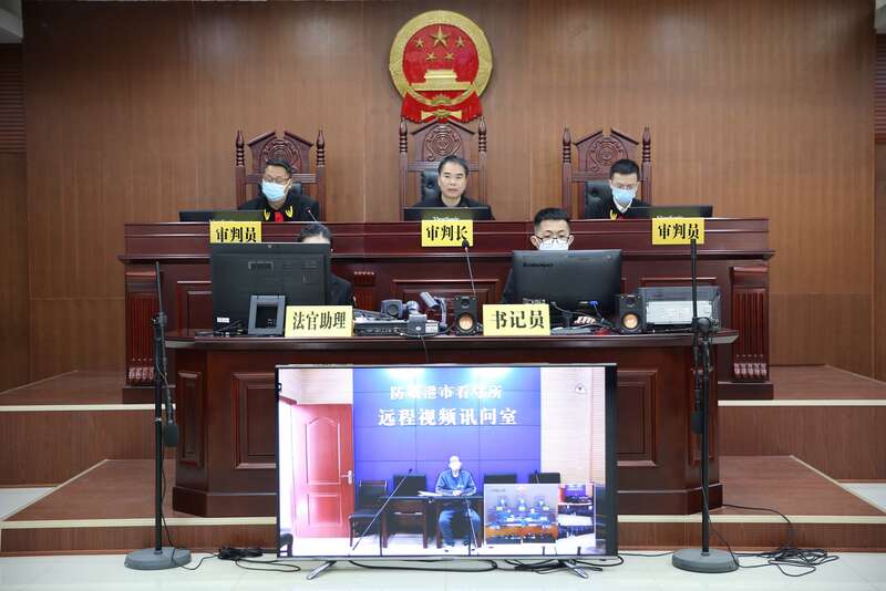 防城港市中级人民法院依法远程公开开庭审理防城港市文旅集团原党委书记、董事长赖子机涉嫌犯受贿罪一案。 防城港市中级人民法院供图